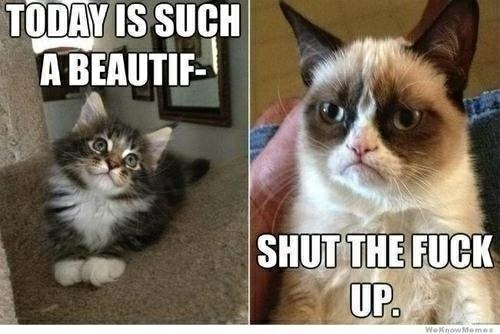 Personally I had the misfortune of meeting a few grumpy cats this week . Seeing them, even I had become a bit grumpy .My reaction each time I thought of them was something like the memes that follow: